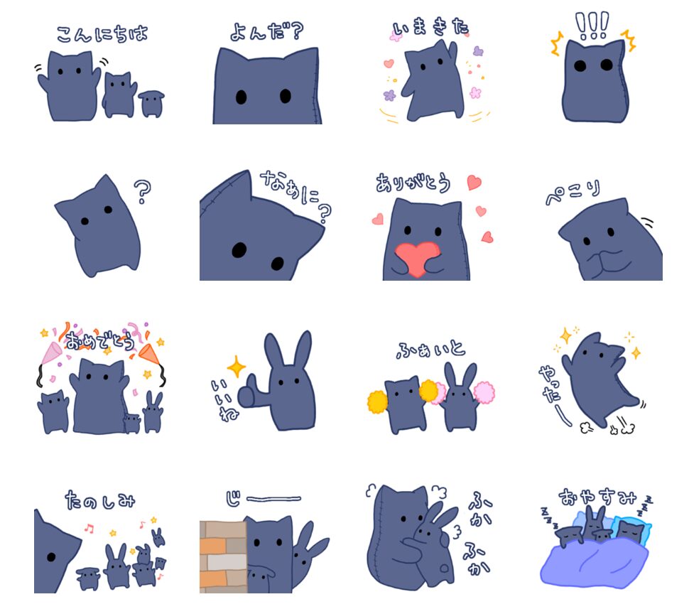 「紺色の布を被った謎の生き物」と小さきものたちのゆるかわスタンプ~。